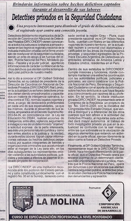 Direccion de Coordinacion Nacional de Detectives Privados "DIRCONDEP - PERU"